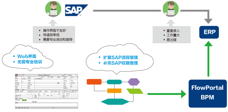 中科華智結(jié)合自身多年實(shí)施SAP ERP的經(jīng)驗(yàn),在為客戶做好ERP實(shí)施服務(wù)的同時,為客戶提供業(yè)務(wù)流程的咨詢、業(yè)務(wù)流程的梳理和業(yè)務(wù)流程的搭建,通過和FlowPortal合作,為客戶提供一站式整體信息化解決方案。